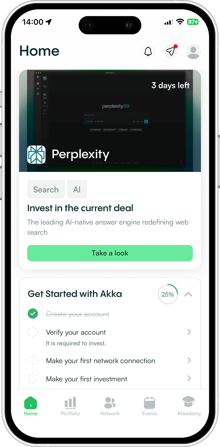 A traditional VC fund pools your capital into a blind structure. You commit money, the fund deploys it, and you receive periodic updates. You typically don’t choose individual companies and you don’t interact with founders directly. Akka works differently. We review private opportunities and invest through structured vehicles, and members can access the same deals on a deal-by-deal basis. You decide whether to participate in each opportunity and how to build your own portfolio. It’s not a blind fund commitment. It’s structured access to private deals with individual choice.